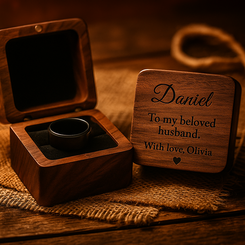 Each ring is crafted using stabilized barrel wood, treated to preserve its natural grain and protect it from moisture.